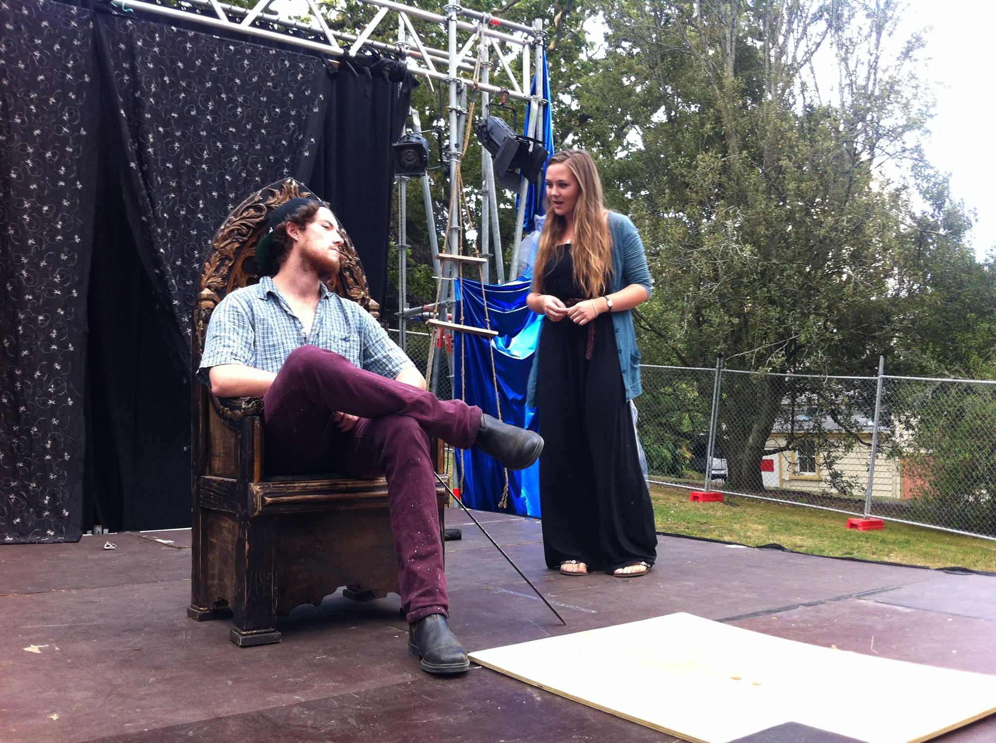 I won’t deny a rising excitement as show time approached along with clouds and the promise of some rough weather. ‘Who cares’, I thought, ‘It’s outdoor Shakespeare and that’s the risk you take.’ Our eleven year old, Shakespeare-nut son, suitably armed with chips, drink and a winter woolly, shared the excitement of both his Mums and reminded us that this was his 4th AUSA Summer Shakespeare and that he ‘loved them to bits.’