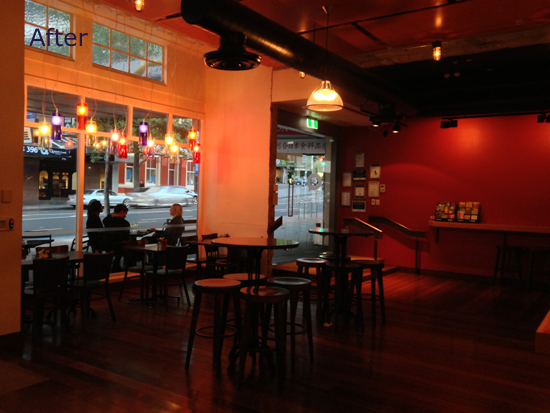 Next, a change of venue to Q Theatre foyer, a post-protest bite to eat