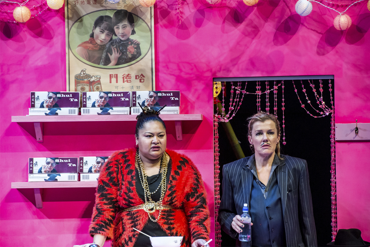 It’s a journey and a half through the evening – in excess of 2 hours 45 minutes even with an interval – but the pace never falters and the performances are all fantastic. It’s funny, outrageous, unpleasant at times yet very moving and McColl hits all his marks. The debate is clear: is it OK to be a good person who does bad things so she can do even more good or should just being good be enough? Shen Te the idealist is Brecht the Marxist in a nutshell but Shen Te is also Shui Ta, the cold-hearted, self-interested drug lord, indistinguishable from each other in reality but in performance polar opposites. Thus the debate engages with Wang and the Gods as commentary. There are surprises and shocks and always there’s the music. There are punkish bits, hints of Lou Reed and John Cage from ‘Songs for Drella’, excellent ensemble and solo singing and endlessly fabulous drumming.