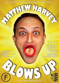Matthew Harvey is a unique and interesting performer. It seems, from most of the promotional material I’ve read, that’s he’s seen more as a stand-up comedian than anything else but, in truth, he’s much more than that as is apparent immediately in his new show ‘Matthew Harvey Blows Up’.