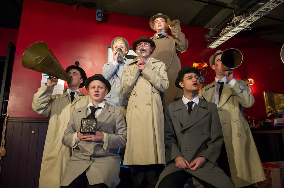 Yes, there’s a narrative and yes, there are themes. There are extraordinary visual threads throughout the work and reference is made to what Lewis Carroll would call ‘cabbages and kings’ but, in Henson’s Daliesque world, these become dogs, coffee, booty and acorns and these threads are woven into a whole by both the trench-coated chorus and the re-occurring characters who quite literally pop out of the woodwork, emerge from under, in and behind the colossal bed of the title and even down through a person-hole in the roof. It’s an extravaganza of sublime absurdity that makes perfect sense and is a delight on each of its gazillion levels.